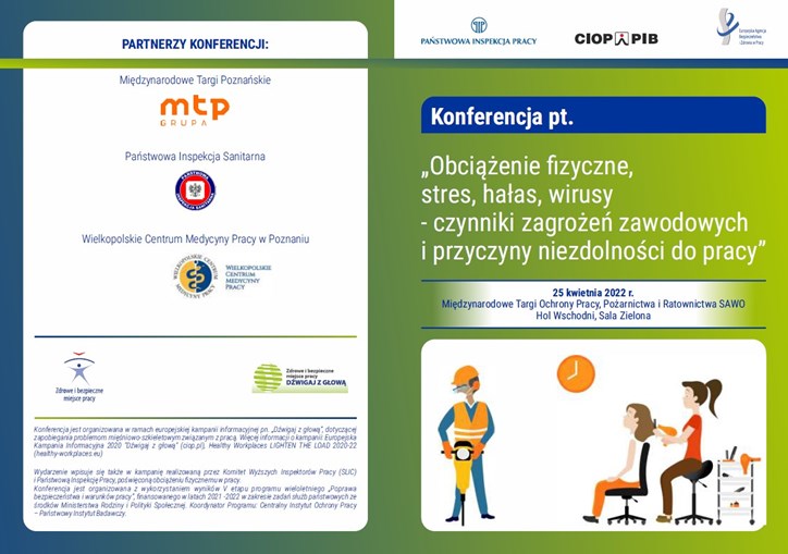 Konferencja jest organizowana w ramach europejskiej kampanii informacyjnej pn. „Dźwigaj z głową”, dotyczącej zapobiegania problemom mięśniowo-szkieletowym związanym z pracą. Więcej informacji o kampanii: Europejska Kampania Informacyjna 2020 "Dźwigaj z głową" (ciop.pl), Healthy Workplaces LIGHTEN THE LOAD 2020-22 (healthy-workplaces.eu)