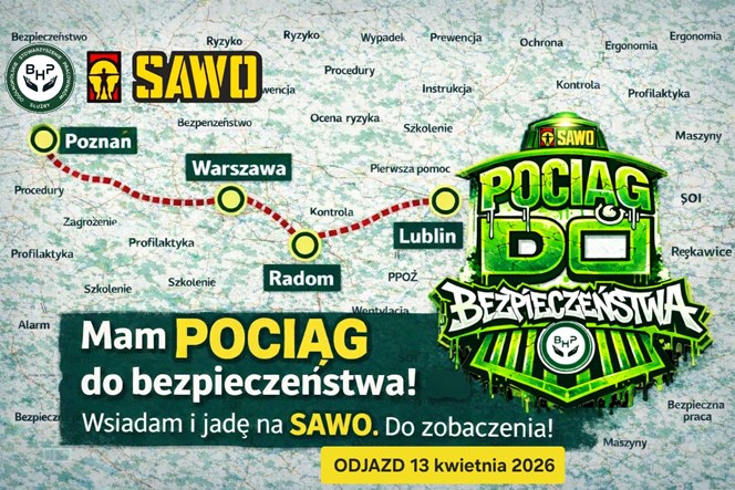 W dniu 13 kwietnia 2026 r. o godz. 13:31 ze stacji Lublin Główny wyruszy specjalny skład kolejowy, który przejedzie przez wiele miast w Polsce, aby o godz. 18:49 dotrzeć do Poznania, gdzie odbywają się targi SAWO. W ostatnim wagonie pociągu powstanie mobilna przestrzeń warsztatów, prezentacji oraz spotkań branżowych, umożliwiająca uczestnikom wymianę doświadczeń oraz dyskusję o wyzwaniach współczesnego bezpieczeństwa pracy.